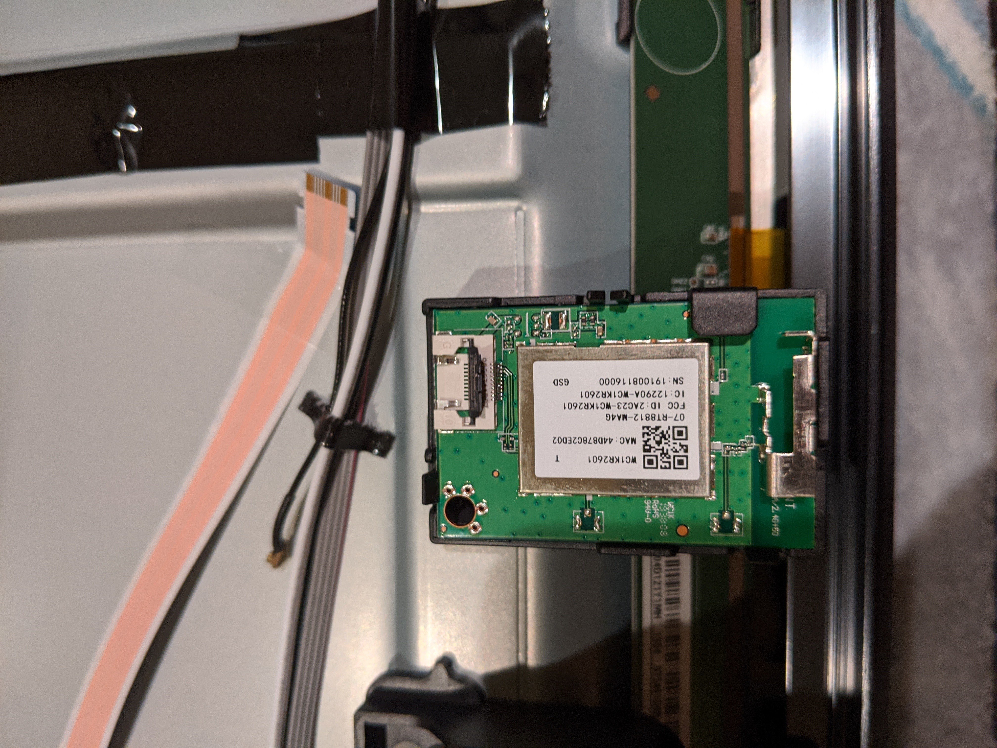 Unfortunately, there do not currently exist any LineageOS-like projects that one could use to easily replace the software running on smart TVs, which would remove the malicious element.4 There is another option, however; one that may well be familiar to anyone who has had to deal with wireless-enabled devices running untrusted code in an otherwise secure environment. One can simply render the TV unable to connect to any network of its own accord — by physically removing its wireless hardware!